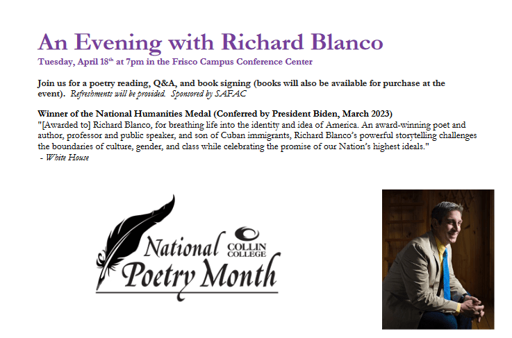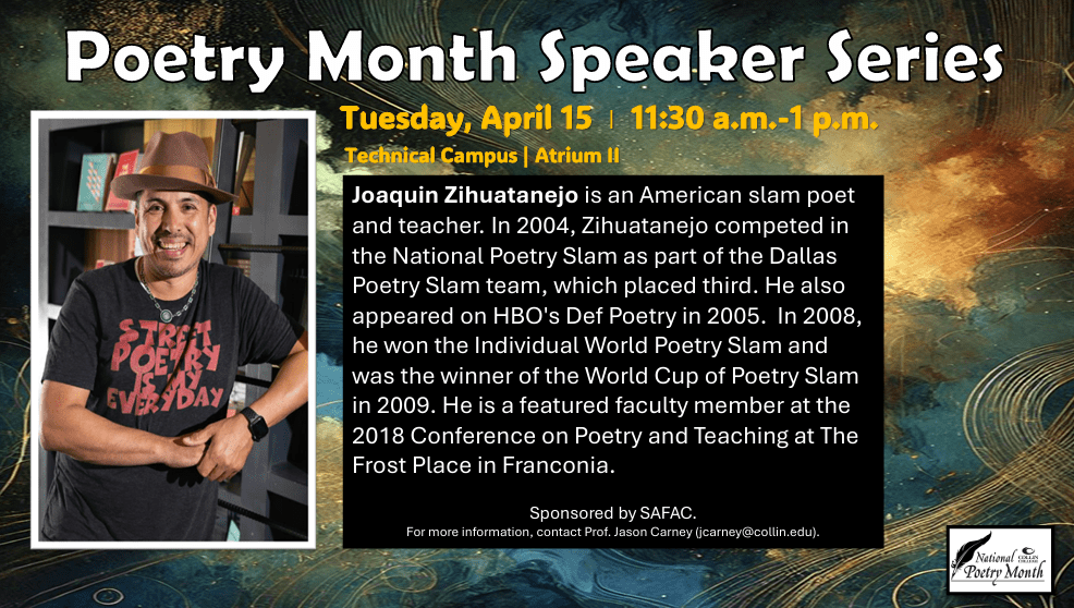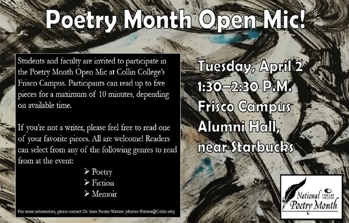 I have a great workshop planned for Poetry Month at Collin College-Frisco. Check it out!