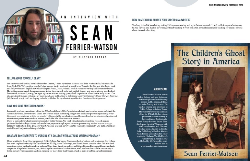 My interview with Cliff Brooks, III, in The Blue Mountain Review is now available. Check it out!